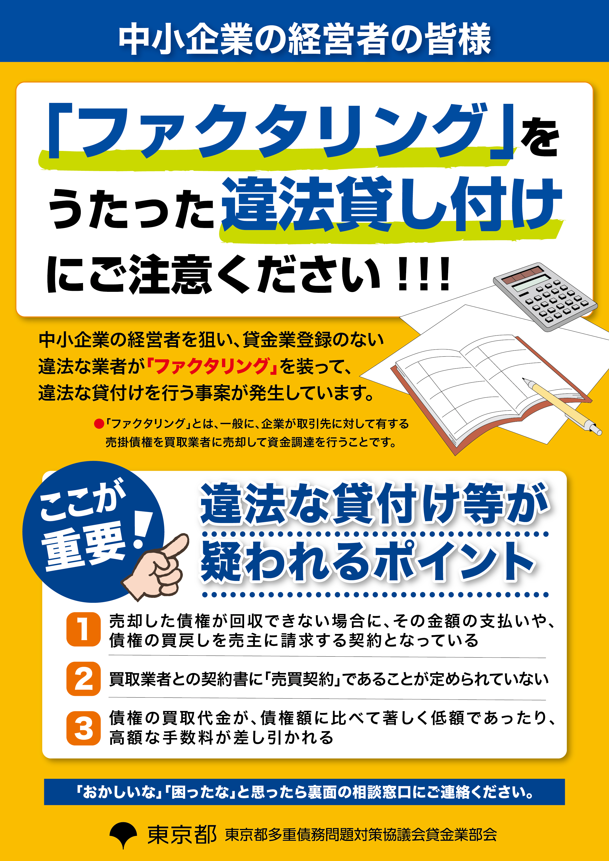 資金需要が高まる年末を控えた11月を「ヤミ金融被害防止強化月間」と定め、今年度は11月3日から9日までを
